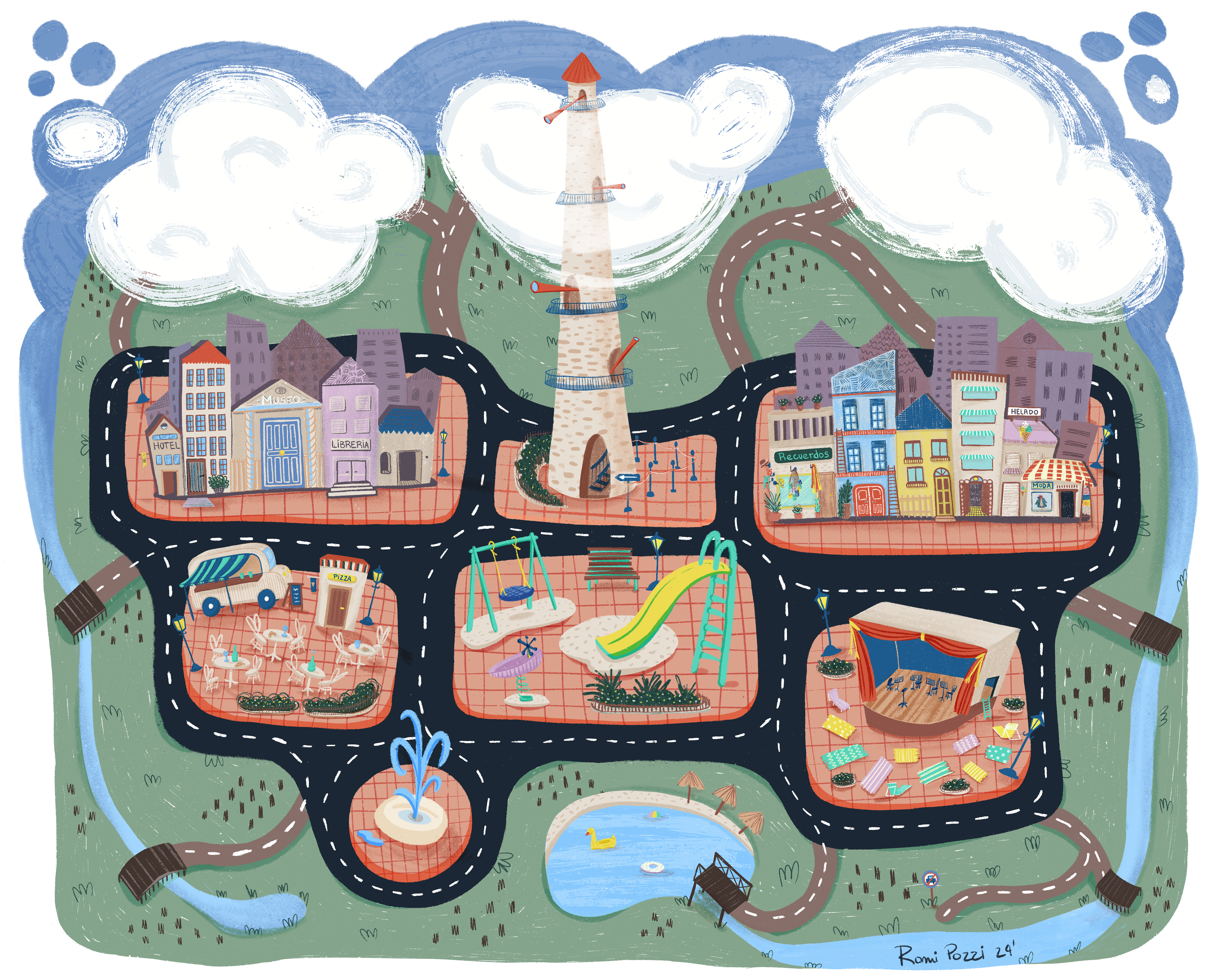 Using the map format, I create illustrated journeys that exploration of the city as a playful experience.